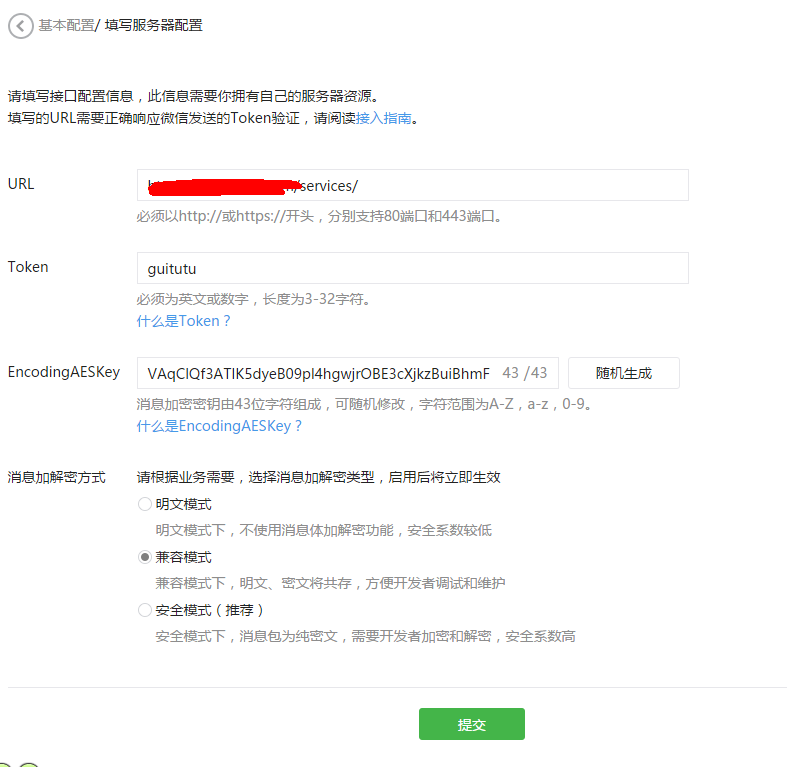 3、URL填写你自己的服务器接口地址,Token可以随便
