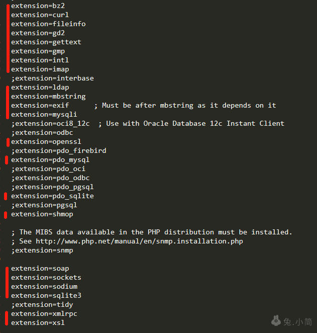 a)extension_dir= “ext”,取消注释,这里是指定php扩展库目录的路径,extension_dir 需要指向存放 PHP 扩展库文件的目录。可以是绝对路径(如 "D:/WebServer/php73/ext")或相对路径(如".\ext")*与apache结合不能写相对路径。在 php.ini 文件中要加载的扩展库都必须在 extension_dir 所指定的目录之中